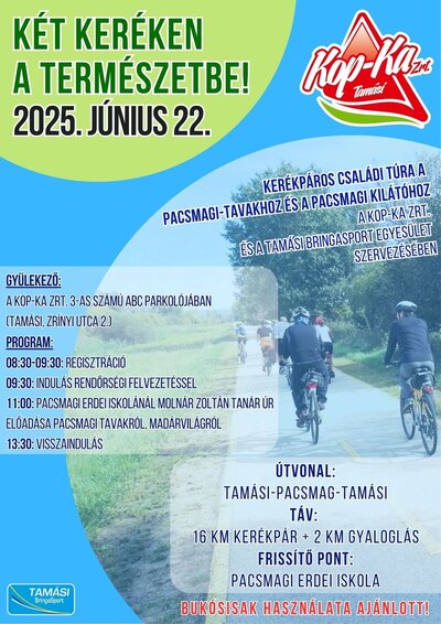 Két keréken a természetbe! - 2025 2025. június 9. Előző Bringás Reggeli - 2025 szeptember 16. Következő XXII. Tamási Kupa 2025